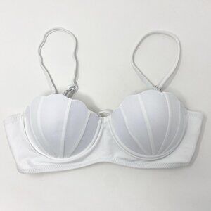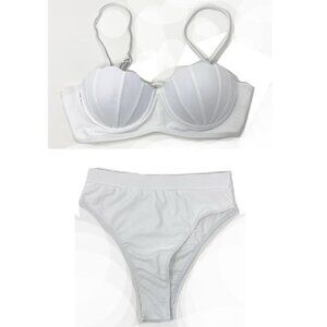 White 2-Piece Bikini High Waisted Scalloped Trim Balconette Push Up Top NWOT