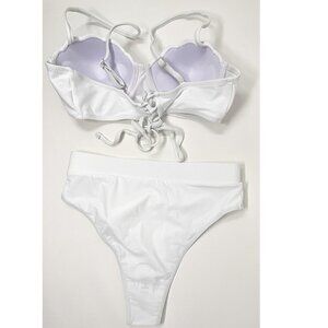 White 2-Piece Bikini High Waisted Scalloped Trim Balconette Push Up Top NWOT