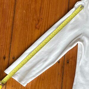 This white 3/4 sleeve top is good shape. No known dings. 94% cotton 6% Spandex. It says size Large, though the fit might be snug. Check the measurements in the photos. Can be be worn alone or under a other top (button-down shirt, jacket, etc.). Classic style. Double seams.