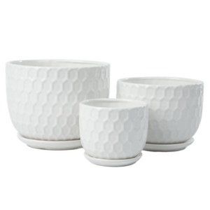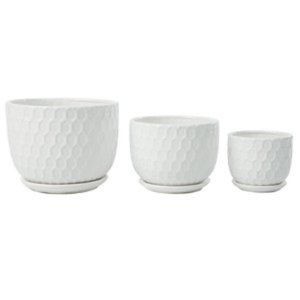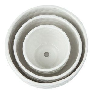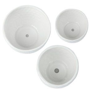 White 3pc Set Textured Ceramic Planters and Attached Saucers #POT0055