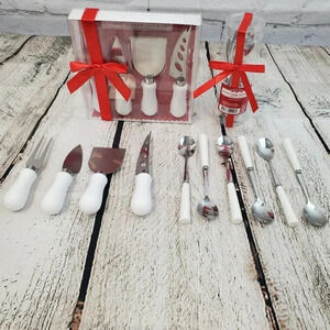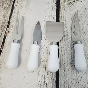White 4 Piece Cheese Knife Set and White 6 Piece Appetizer Spoon Set