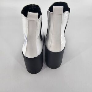 white booties. size 6. some blue marks from new jeans, pictured, may come out with magic eraser idk. overall good condition.