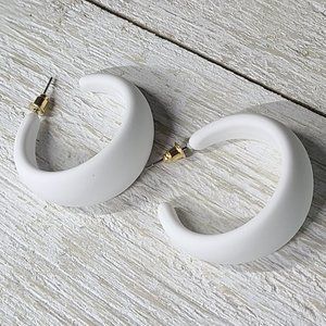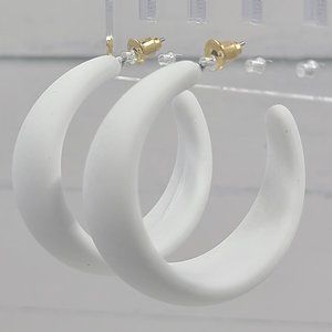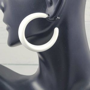White 80's Retro Smooth Matte Texture 1.5" Semi Wide Fashion Hoop Earrings