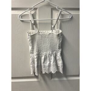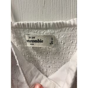 The product is a white halter tank top for girls by Abercrombie & Fitch in size XL. It features a solid color design with a halter neckline, perfect for warm weather and summer outfits. Made specifically for girls, this top is a versatile wardrobe staple that can be styled in various ways to create trendy and stylish looks. Also fits like adult XS.
