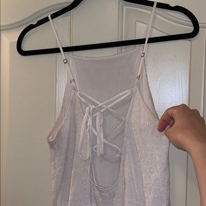 This dress is super cute and so perfect for a weekend at a music festival. The material is lightweight and the tie in the back is flirty and feminine! Looks adorable with fun bright colored sneakers.