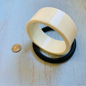 White Acrylic Dark Brown Wood Bangle Bracelets