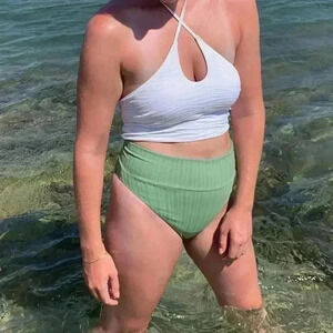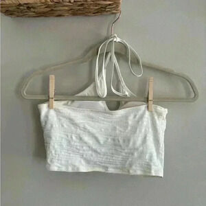 Longline white bikini top from aerie! Super cute with good coverage. Can be tied at the neck to style in multiple ways. In great used condition, with a little wear. Can be work as a crop top too!