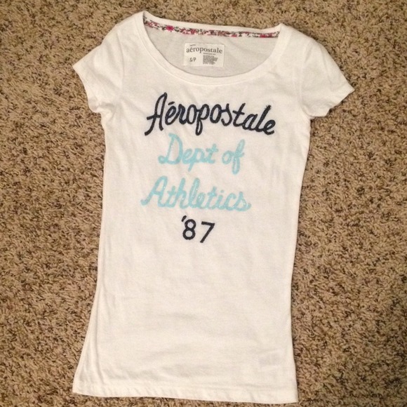 White, Aeropostale, Never Worn, White with Navy & Baby Blue Writing, Size Small, Short Sleeved