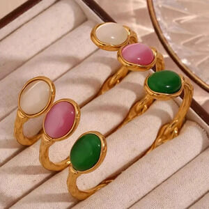 White Agate 18K Gold Stainless Steel Waterproof Cuff Bracelet
