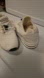 Stylish white running sneakers with gold accents. Comfortable and trendy design.