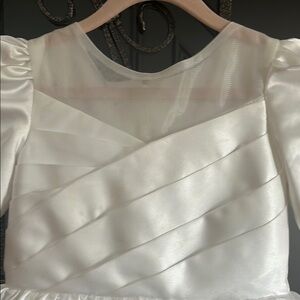 White A-line Puff Sleeve Satin With Tulle & Sheer Illusion Flower Girl Dress