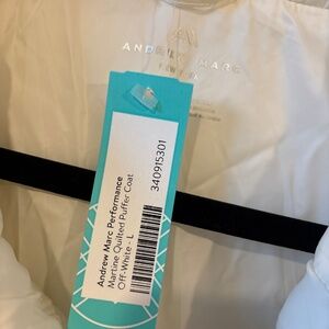 Brand new white Andrew Marc puffer jacket. Perfect for winter and with any outfit. Light weight, with silver zipper.