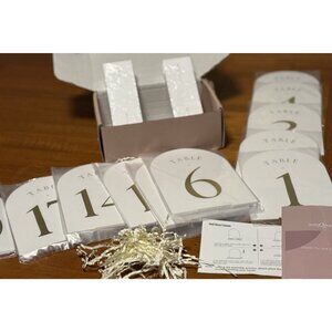 Make your reception table numbers stand out with these elegant white arch table numbers with stands. Featuring a classic white color with gold foil printed font, these double-sided table numbers add a touch of sophistication to your decor. The set includes numbers 1-20, each measuring 5x7 inches, and weighs 2.34 pounds. Perfect for adding a touch of elegance to your centerpieces and table decor.