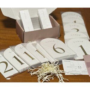 White Arch Reception Table Numbers with Stands 1-20 Gold Foil Printed 5x7