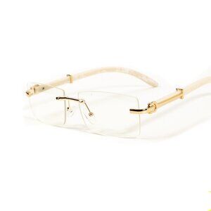 White Arm Rimless Clear Lens Square Gold Frame Unisex Rectangle Hip Hop Glasses