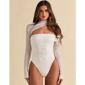 White Asymmetrical Long Sleeve Slim Bodysuit