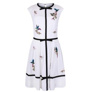 Ted Baker Lina Highgrove Embroidered Chiffon Mini Dress is a dreamy party look featuring hummingbird and floral embroidery,