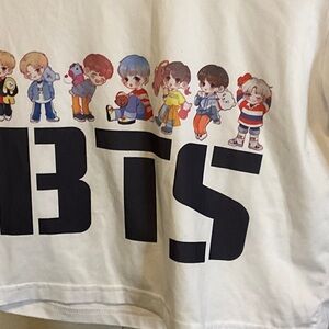 This white tee from features a fun BTS cartoon graphic, perfect for young fans. Crafted for comfort and style.