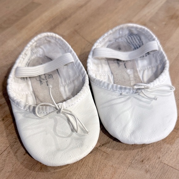 Charming white ballet flats with elastic straps. Perfect for dance practice. Guc
