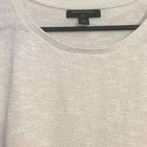 Sleeves hang just off shoulders. Course knit gives the top dimension and texture. Bottom is a little more narrow than the shoulders to give a slight slouchy top look, but still professional.