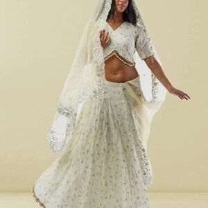 White Banarasi Georgette Lehenga with Lace | Muvvas Boutique