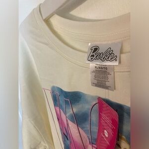 White Barbie sweatshirt in size XL. Has picture of Barbie on a flamingo.1 left