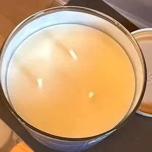 Elegant candle with a blue marbled design. Features a fragrant soy wax blend.