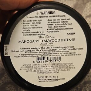 Intense fragrance with rich mahogany and dark oak. Frosted lavender notes. Exclusively fragranced soy wax blend.
