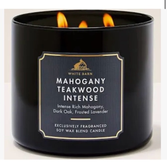 Indulge in the luxurious scent of Mahogany Teakwood. Elegant black jars with gold lids. Perfect for any decor. 3 wick candle