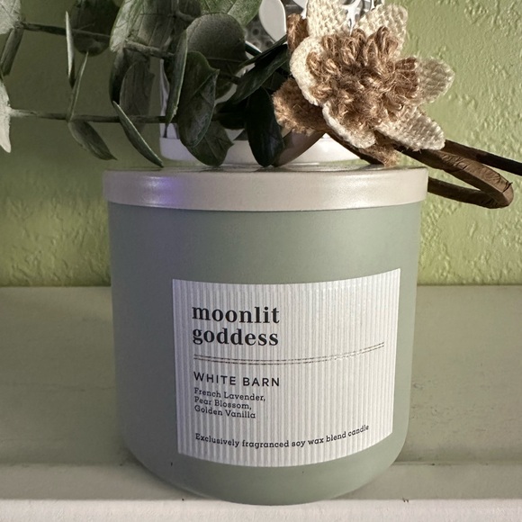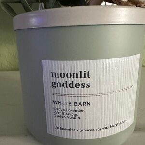 Relax with the White Barn Moonlit Goddess Candle. Fresh lavender and pear blossom create a calming atmosphere. Perfect for unwinding.