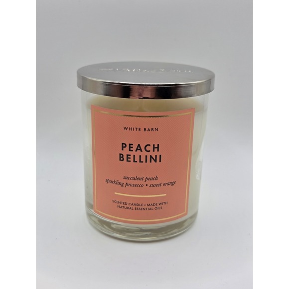 White Barn Peach Bellini Scented Candle Succulent Peach Prosecco Orange 1 wick
