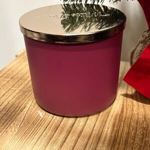 Elegant 3-wick candle in a deep red container. Infused with apple and pumpkin aroma. Never used.