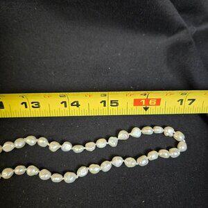 White Baroque Freshwater Pearl Necklace 34” Hand Knotted Iridescent Long Strand