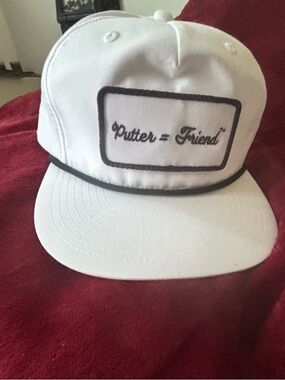 White Baseball Cap with "Putter = Friend" Script Patch