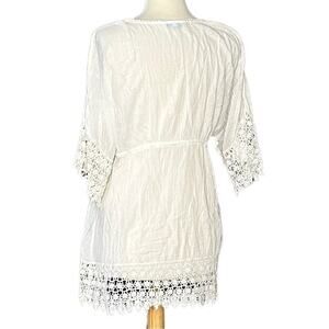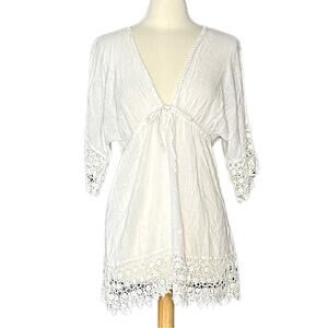 White Beachy Swim Coverup Lightweight Sheer Mini Dress Low Cut S21