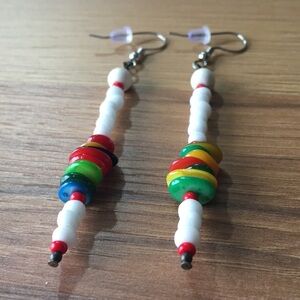 White Beaded Ladies Long Earrings, Handmade Ladies Earrings