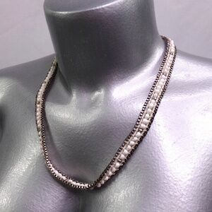 White Beaded Necklace with Button Closure