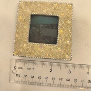 White / cream Opalescent Jeweled Frame Table Picture Metallic Beaded edge 3 x 3