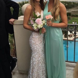 White Beaded Sequined Mesh Maxi Dress