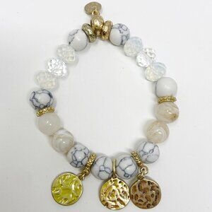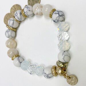 White Beaded Stretch Bracelet w/Hope, Faith & Heal Charms