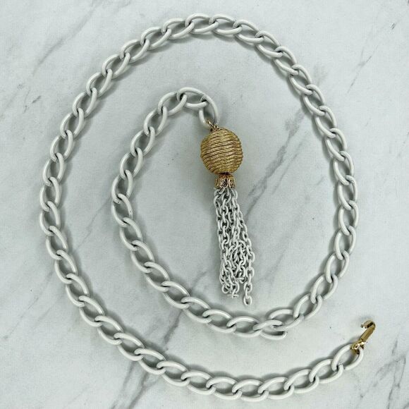 White Beehive Swirl Tassel Charm Chain Link Belt Extra Small/Small (XS/S) ✨