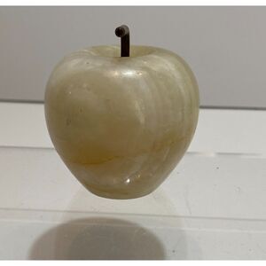 White Beige Pale Green Quartz or Marble Carved Brown Stem Decor Apple