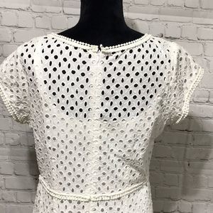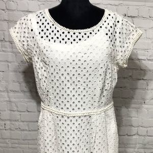 White Belted Eyelet Sheath Dress Preppy and Chic Sizeb10