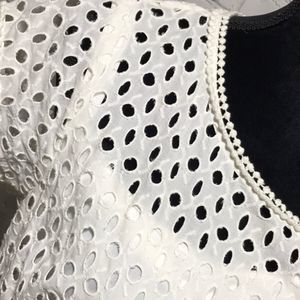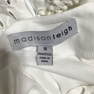 Beautiful white eyelet sheath dress with attached white slip. High quality embroidered trim at waist neck and sleeves. Has been worn but in great condition. Perfect for wedding pre events, vacation, photos, career or business casual. Can be dressed up or down depending on how you accessorize.