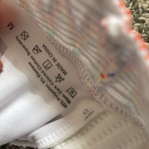Stylish white bikini featuring a vibrant zigzag trim. Perfect for a beach day.