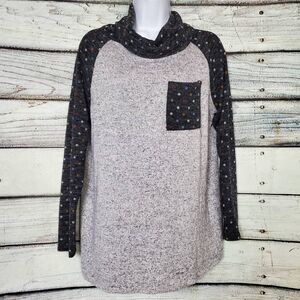 White Birch Gray Polka Dot Cowl Neck Pullover Top Women’s Medium USA Made