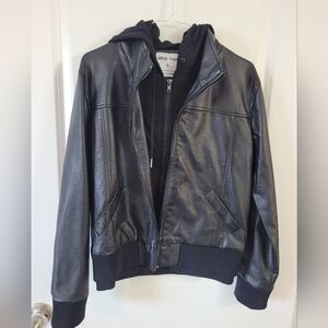 Leather jacket appearance on the outsize, fleece zip hoodie on the inside. Stay extra warm this winter! Both layers zip seperate