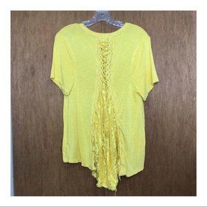 White Birch, Women's, Yellow, Floral, Lace, V Neck, Short Sleeve Shirt