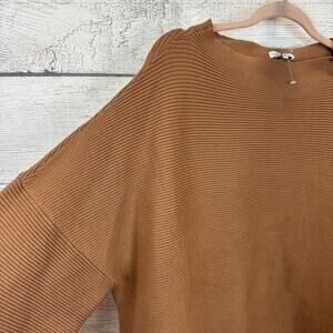 White Birch Plus Size Brown Ribbed Wide Neck Cuff Sleeve Top Size 2X