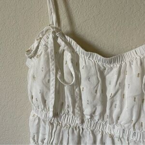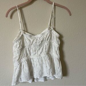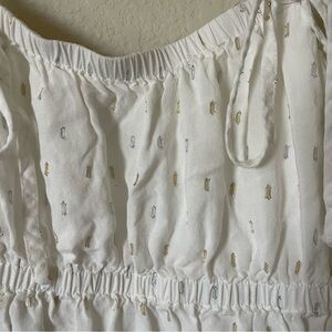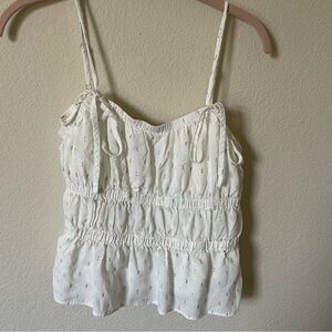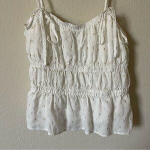 Elegant white ruched top with delicate straps. Perfect for any occasion. Like new . Small . Gold and silver accents .